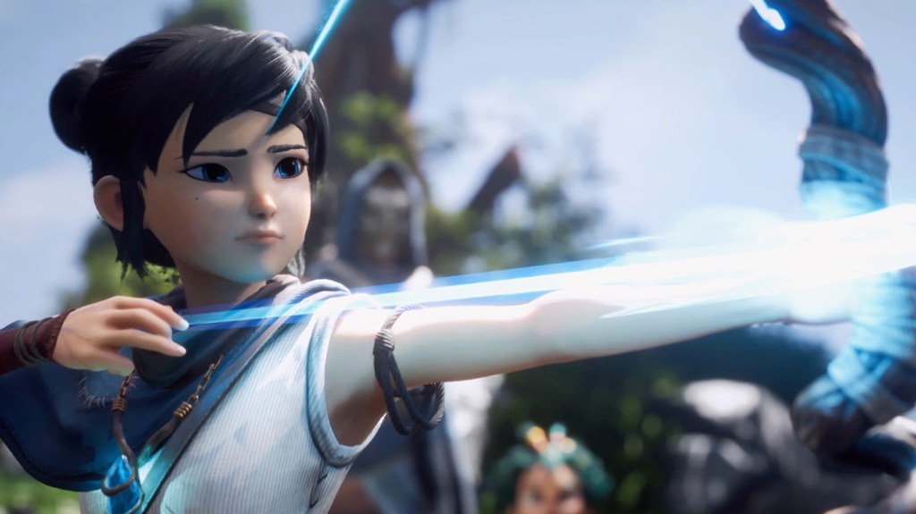 Kena’s magical abilities are central to the gameplay. These abilities, which include manipulating the environment and interacting with spirits, are crucial for both puzzle-solving and combat. You start the game with a magical staff, but over time you learn how to use it as a spirit bow which allows you to fire your abilities at distant objects (or enemies). Throughout the game you can upgrade certain weapons and abilities, like adding rot to your bow to fire off a more powerful shot against the tougher enemies and bosses.